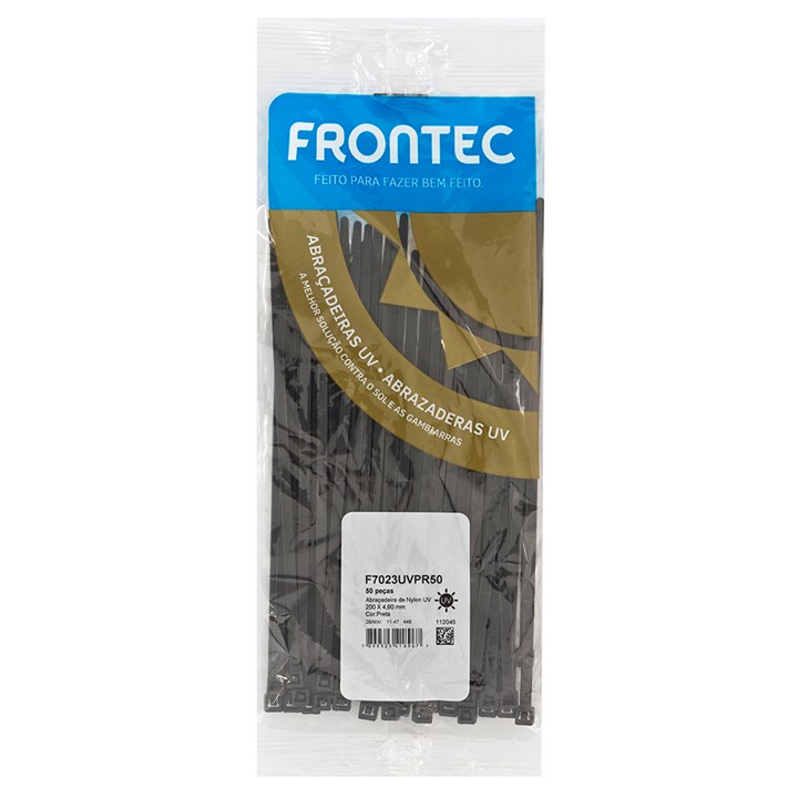 Abraçadeira Nylon Uv Preta 200x4,80mm C/50 Peças F7023uvpr50 Frontec