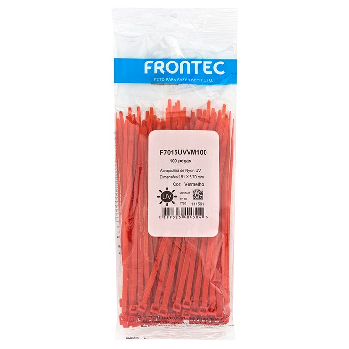 Abraçadeira Nylon Vermelha 151x3,70mm C/100 Peças F7015uvvm100 Frontec