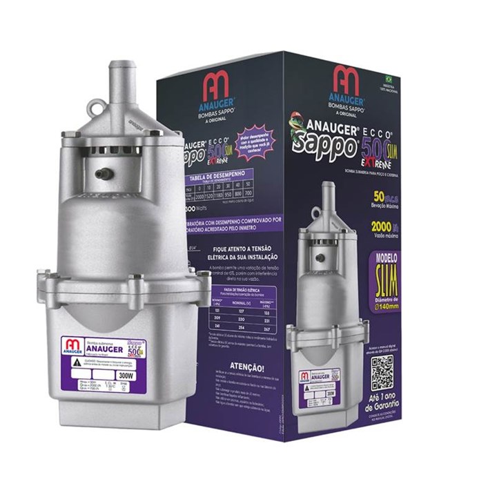 Bomba Submersa Vibratória Para Poço Sappo Ecco 500 Slim Extreme 300w 220v Altura Máx.50m 2000l/H 60483 Anauger