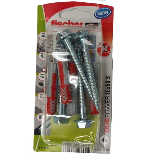 Bucha Duopower Com Parrafuso Cabeça Chata 10x50 04 Peças 534999 Fischer
