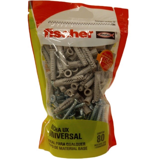 Bucha Ux 6a Com Parafuso Cabaça Chata 80 Peças 600203 Fischer