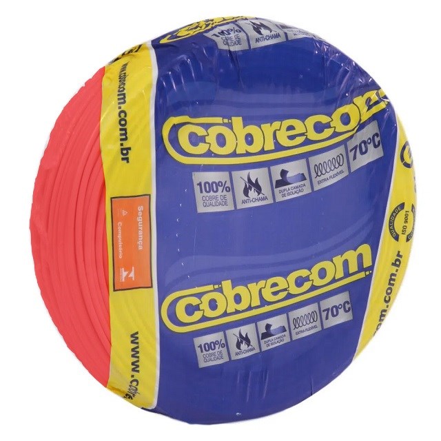 Cabo 6,0mm² 750v Flexicom Peça Com 50 Metros Vermelho Cobrecom