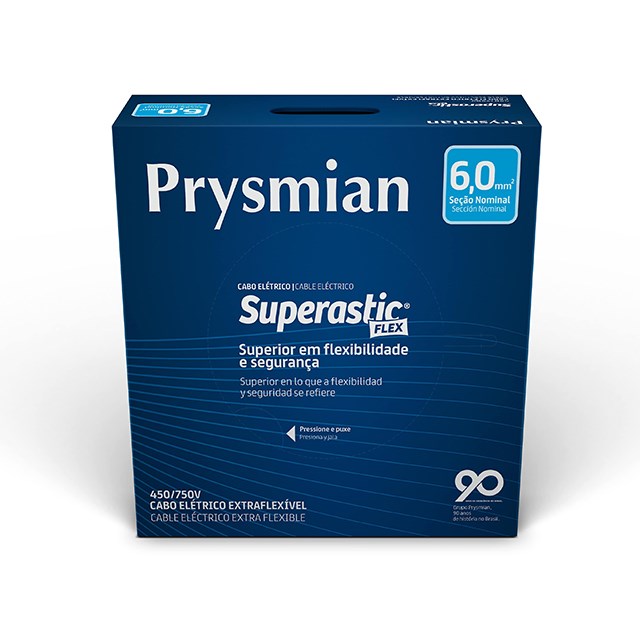 Cabo 6,0mm² 750v Superastic Flex Peça Com 100 Metros Azul Prysmian