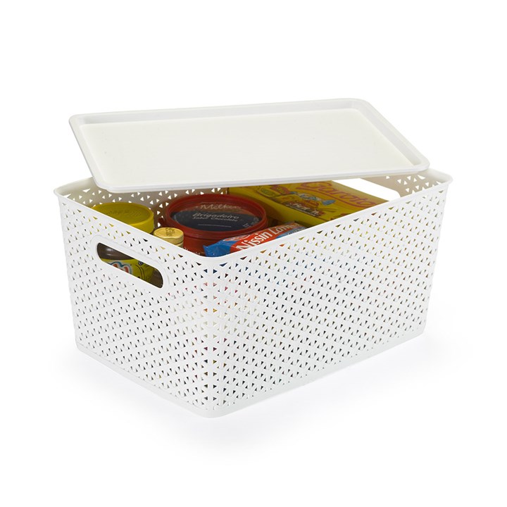 Cesto Organizador C/Tampa Rattan Grande (36,5x26,5x18,5cm) Branco 1560br Plasnorthon