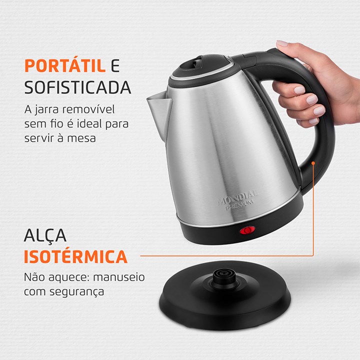 Chaleira Elétrica Pratic 2 Litros 1200w 220v Preto/Inox Ce-06 Mondial