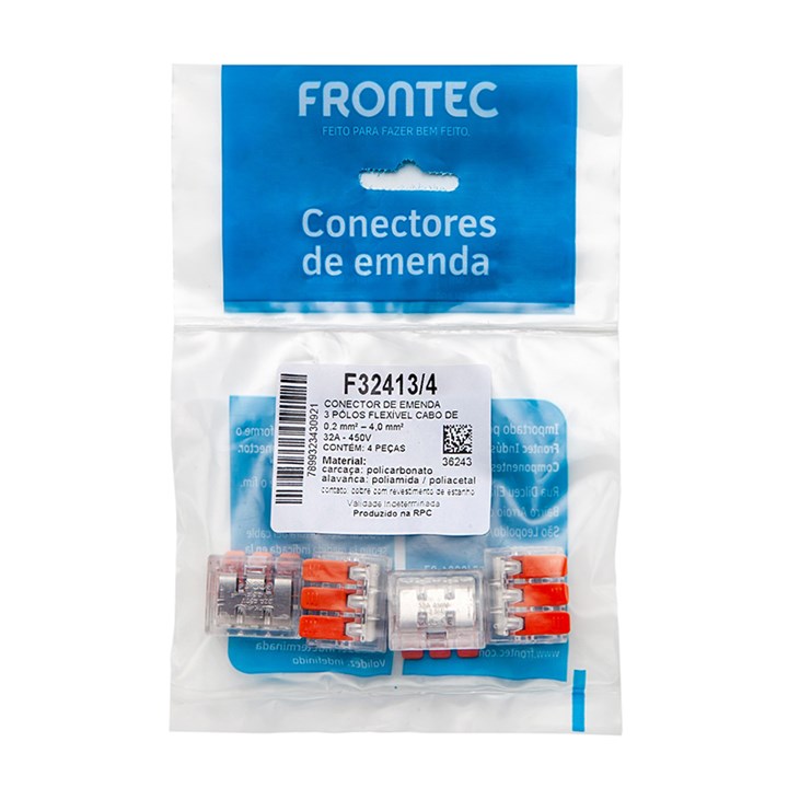 Conector Emenda 3 Fios Até 4mm Com 4 Unidades F32413/4 Frontec