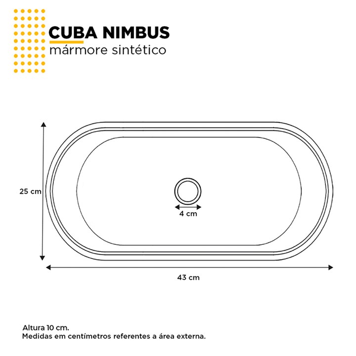 Cuba de Apoio L.43 X C.25 X A.8cm Nimbus Branca 101438 Cozimax