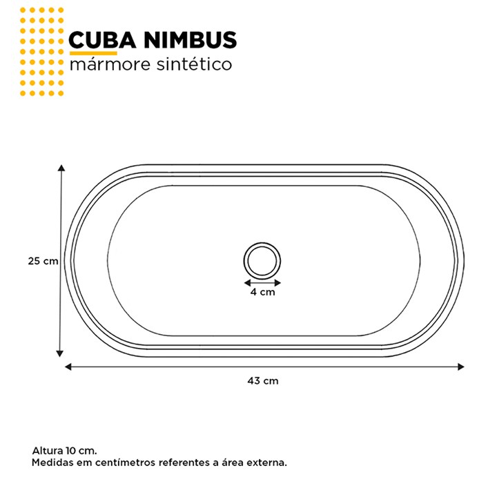 Cuba de Apoio L.43 X C.25 X A.8cm Nimbus Cinza 101443 Cozimax