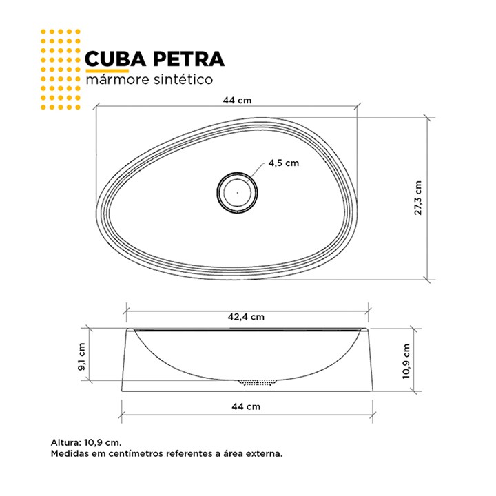 Cuba de Apoio L.43 X C.27 X A.11cm Petra Branca 101979 Cozimax