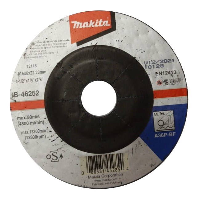 Disco de Desbaste Abrasivo Para Metal 115 X 6,0 X 22,23mm B-46252 Makita