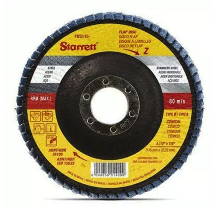 Disco Flap Côncavo Para Inox Diâmetro 115mm Furo 22,23mm Grão 80 Fds115-80fc Starret