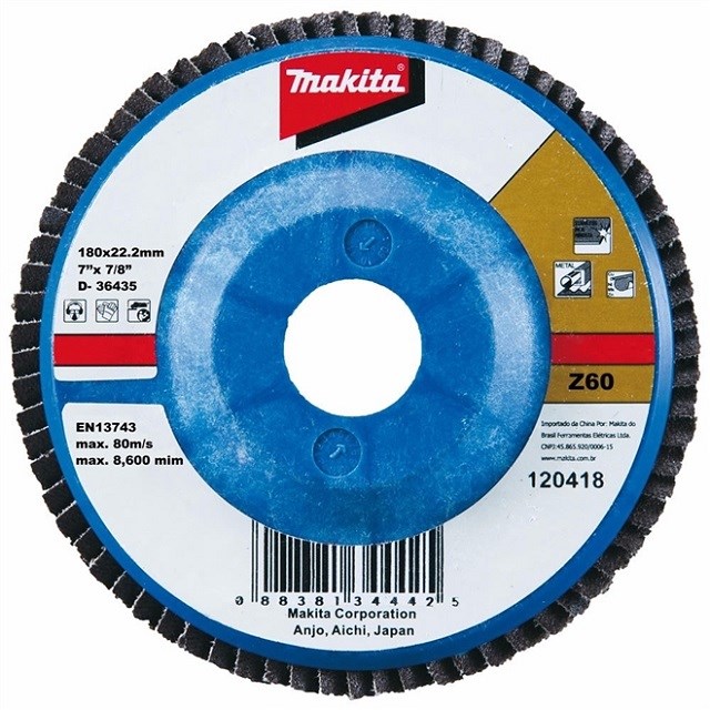 Disco Flap Plano Para Aço Diâmetro 180mm Furo 22,2mm Grão Z60 D-36435 Makita
