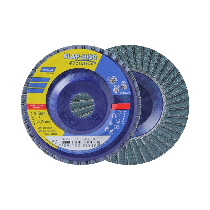 Disco Flap Plano Para Aço, Metal E Inox Diâmetro 115mm Furo 22,23mm Grão 60 R822 Norton