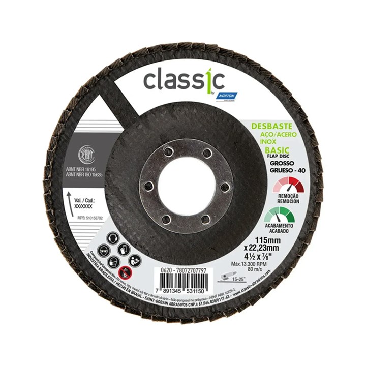 Disco Flap Plano Para Aço, Metal E Inox Diâmetro 115mm Furo 22,23mm Grão 80 R201 Norton