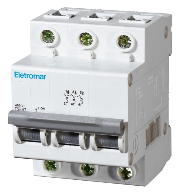 Disjuntor Tripolar Curva C 3ka 10 Amperes Din Br E89140 Eletromar