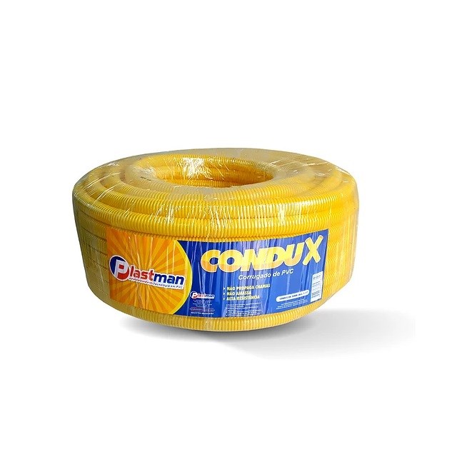 Eletroduto Corrugado Flexível Em Pvc Amarelo 20mm (10 Metros) 8936 Plastman