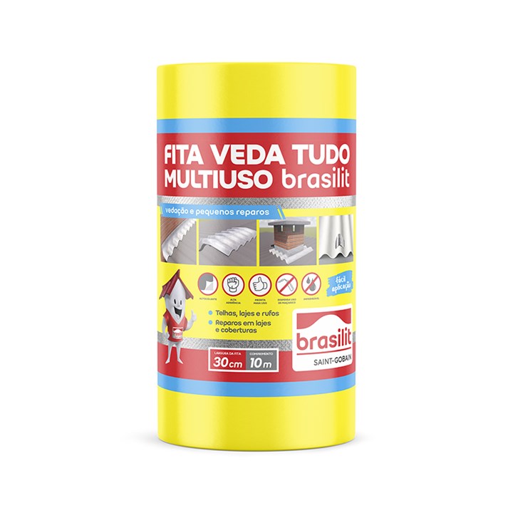 Fita Adesiva Impermeabilizante Com Película Alumínio Larg.30cm Esp.0,7mm Rolo C/10m Veda Tudo Brasilit