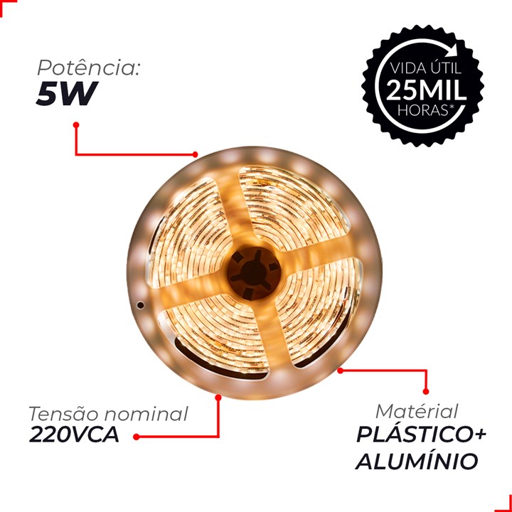 Fita Led Kit Com 5 Metros Ip65 15w 220v 2700k Amarela Avant