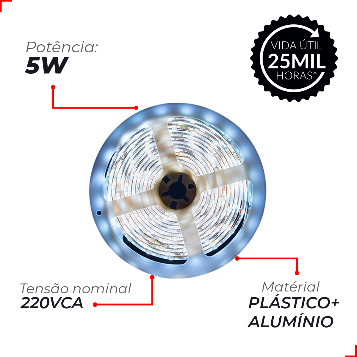 Fita Led Kit Com 5 Metros Ip65 5w 220v 6500k Branca Avant