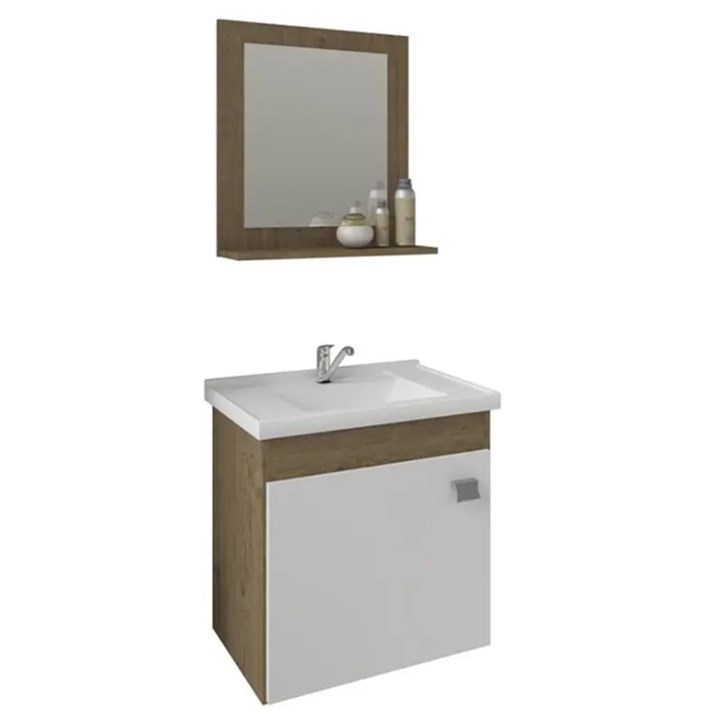 Gabinete Em Mdf Com Lavatório E Espelheira Para Banheiro Íris Amêndoa/Branco L44,8 X A46 X P31,5cm 9944.33 Mgm