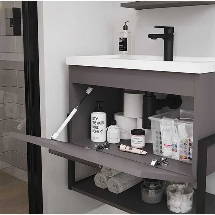 Gabinete Em Mdf Com Lavatório E Espelheira Para Banheiro Metalo Titânio L60 X A55 X P34,1cm 19189.38 Mgm