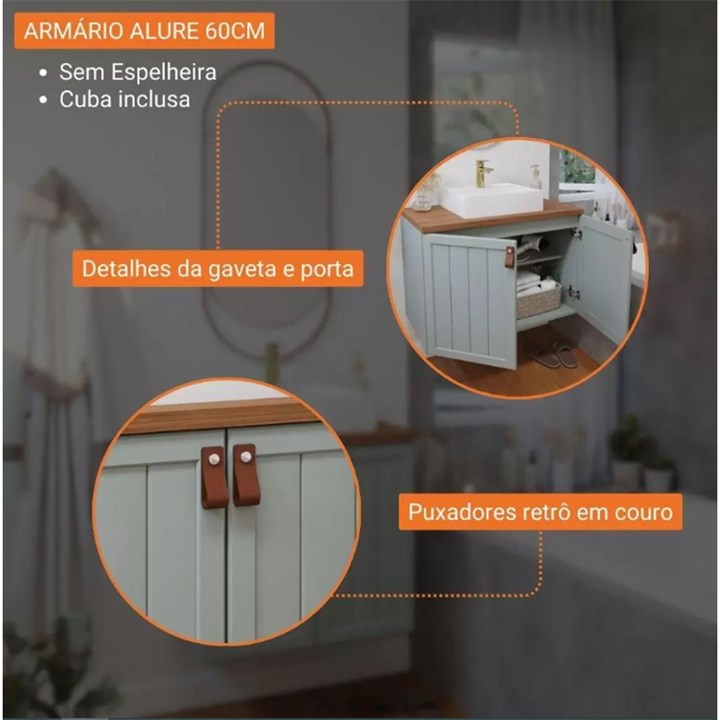 Gabinete Em Mdf Com Lavatório Para Banheiro Alure Pistache/Freijó L65 X A93 X P45,1cm 22463.46 Mgm