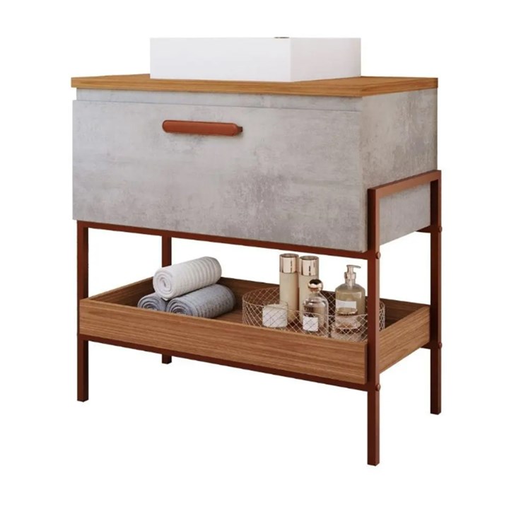 Gabinete Em Mdf Com Lavatório Para Banheiro Portinari Cimento/Freijó L61,3 X A94 X P45,1cm 22453.51 Mgm