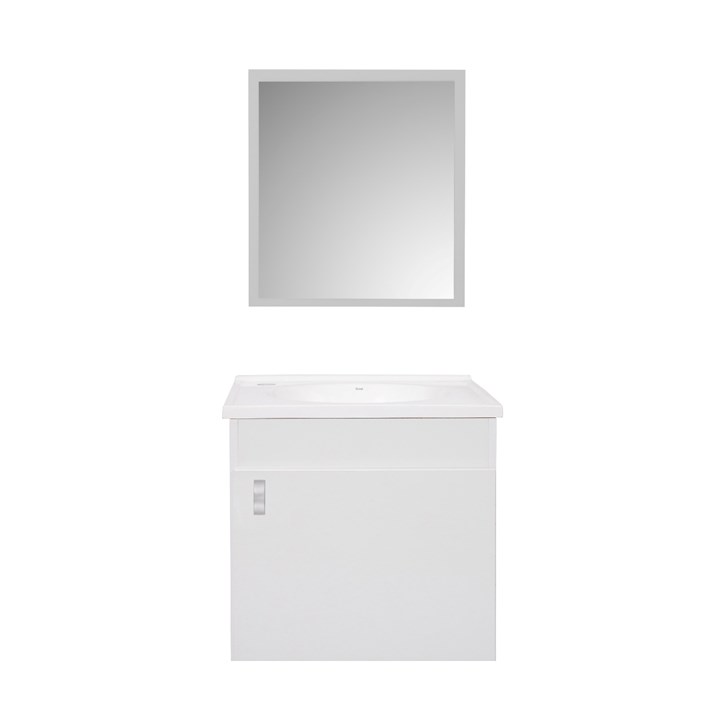 Gabinete Em Mdf E Mdp Com Lavatório E Espelho Para Banheiro Roma Branco 42x37cm 26047 Sicmol