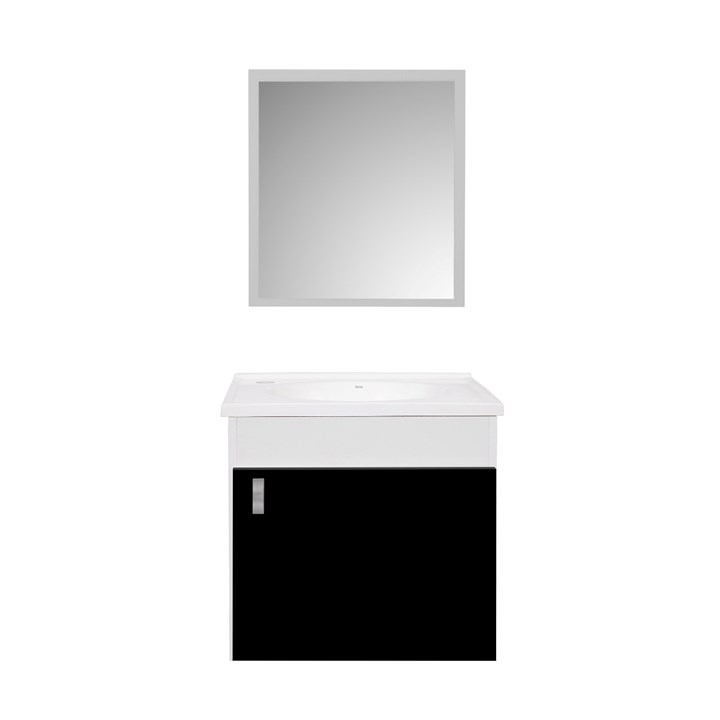 Gabinete Em Mdf E Mdp Com Lavatório E Espelho Para Banheiro Roma Branco/Preto 42x37cm 26047 Sicmol