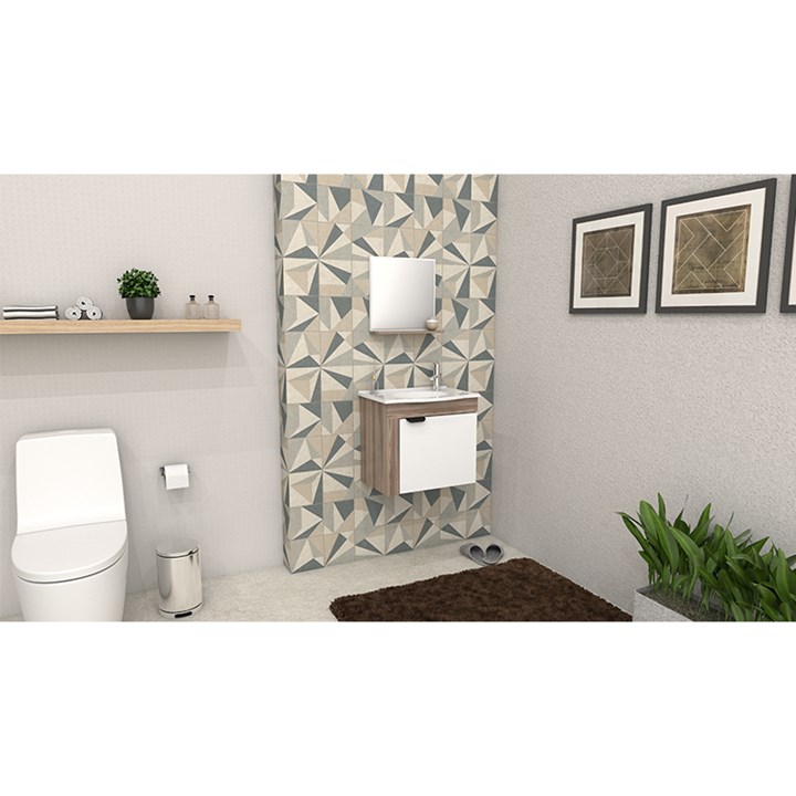 Gabinete Para Banheiro Em Madeira Com Lavatório Jasmim Larg.49,8xalt.45xp.31,3cm Branco Com Tamarindo 100073 Cozimax