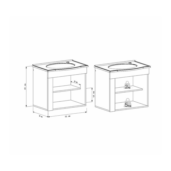 Gabinete Para Banheiro Em Madeira Com Lavatório Jasmim Larg.49,8xalt.45xp.31,3cm Preto Com Tamarindo 101141 Cozimax