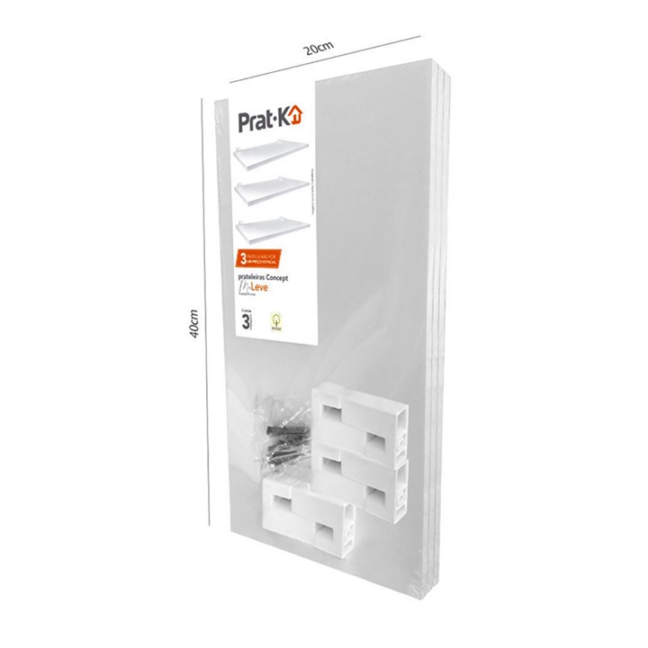 Kit 3 Prateleiras Com Suporte 120x20x40cm Branca 10263.010 Pratk