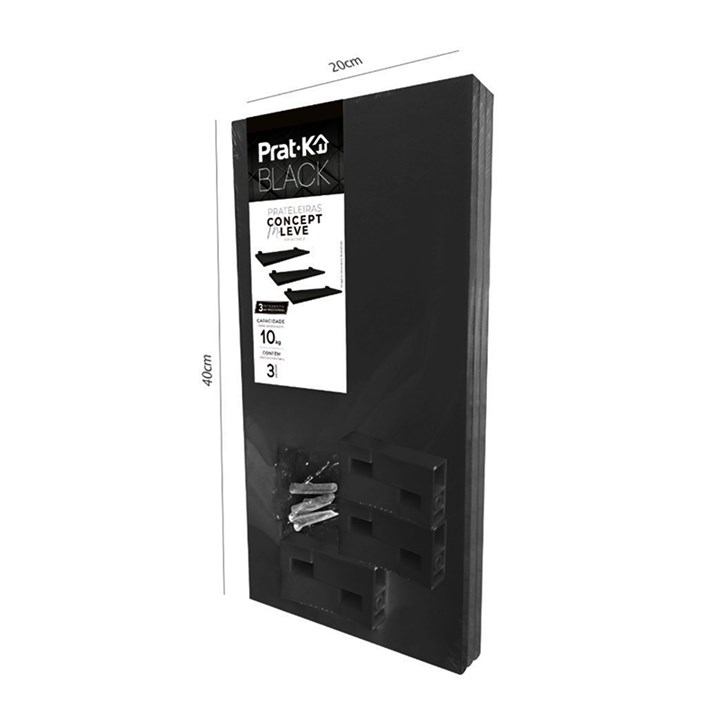 Kit 3 Prateleiras Com Suporte 120x20x40cm Preta 10264.010 Pratk