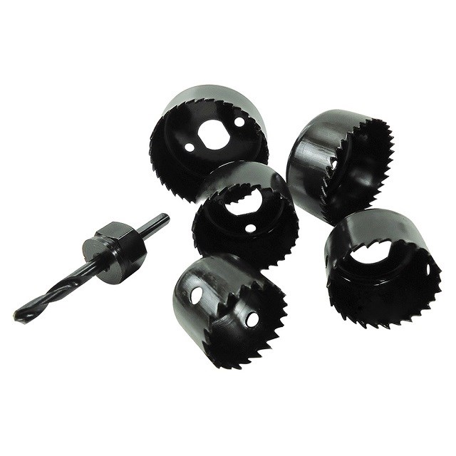 Kit de Serras Copo Aço Carbono 6 Peças (Suporte de Fixação+ Serras 32,38,44,54 E 59mm) 9634 Stamaco
