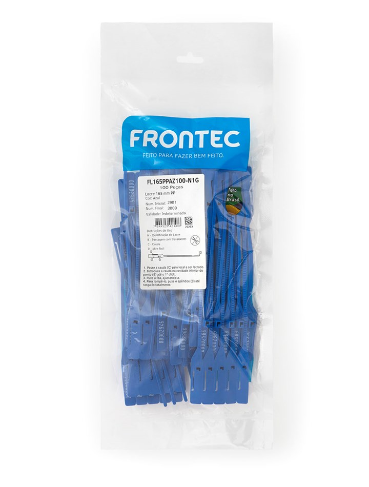 Lacre Plástico Azul Numerado 165mm C/100 Peças Fl165ppaz100 Frontec
