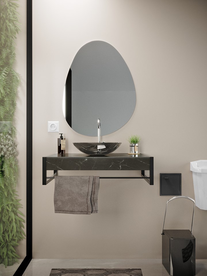 Lavabo Esparta 71 X 43cm Tampo Em Porcelanato Nero Cuba de Vidro E Perfil de Alumínio Black 1922 Cris Metal
