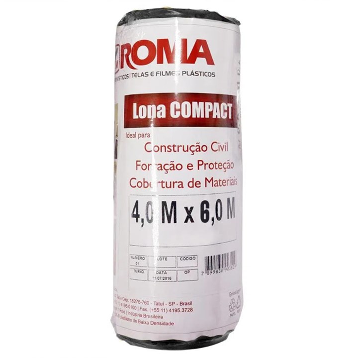 Lona Plástica Compact Preta Rolo Larg.4 X Comp.6m Espes.±100 Micras 15527 Roma