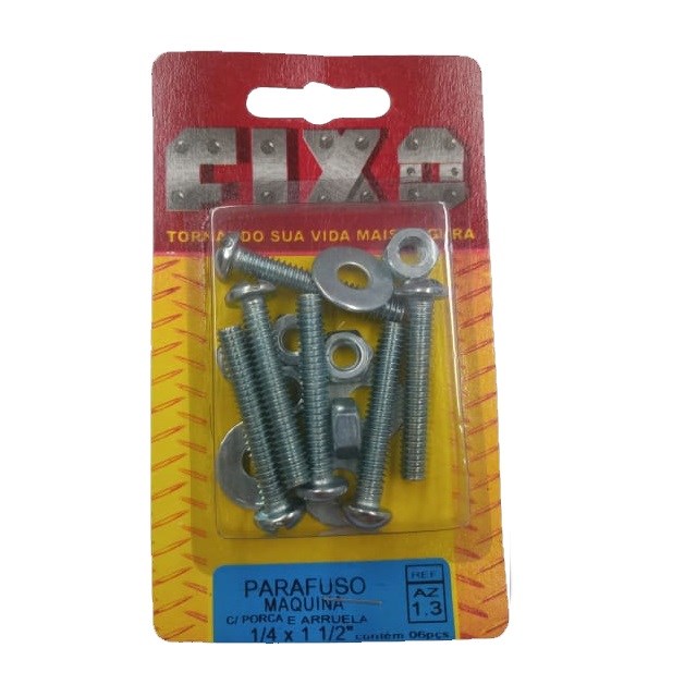 Parafuso Maquina Com Porca E Arruela 1/4x1.1/2 Com 06 Peças Az 1.3 Fixo