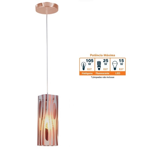 Pendente de Vidro Quadrado 1 Bocal E-27 Zebrado E Cobre Mirage Yhm101e27pdzco Llum Bronzearte