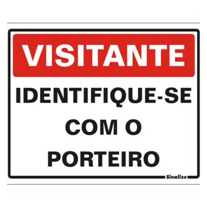 Placa Sinalizadora Em Poliestireno15x20cm "Vizitante Identifique-Se Com O Porteiro" 220bm Sinalize