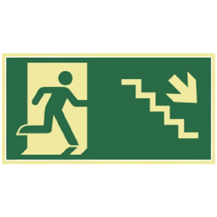 Placa Sinalizadora Fotoluminescente Em Pvc 15x30cm "Escada Descida À Direita" 315ah Sinalize
