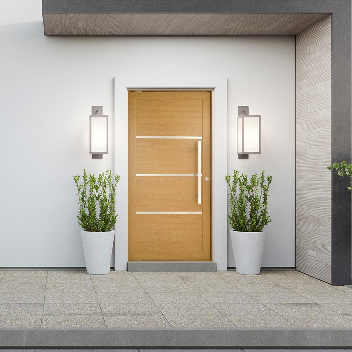 Porta Alumínio Carvalho Topsul Pivotante Lambri Esquerda Com Puxador E Visor L100xa220 697 Esquadrisul