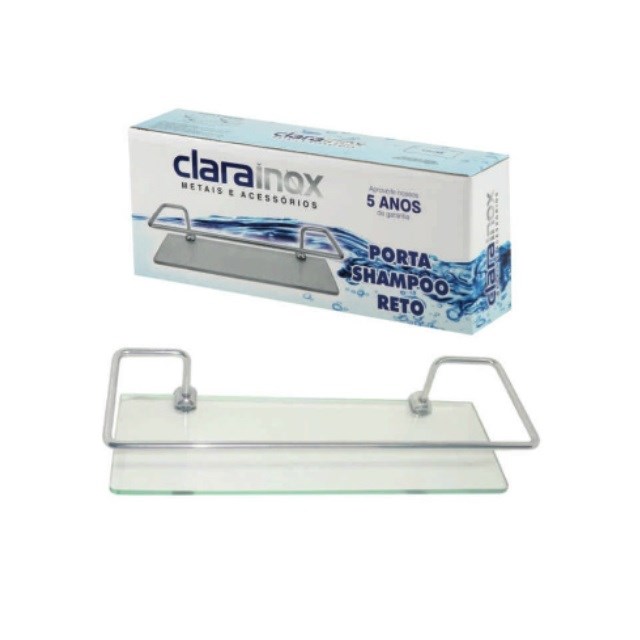 Porta Shampoo Reto Standard Vidro 6mm 1200 Clarainox