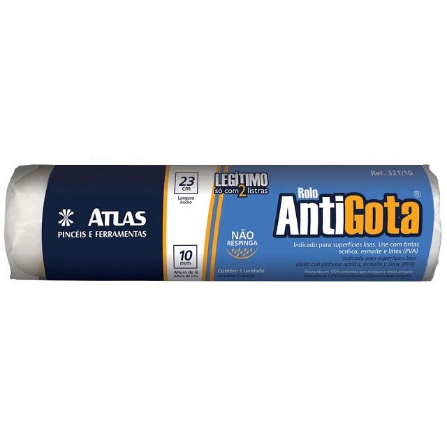 Rolo Lã Sintética Para Pintura Antigota Alta 23cm Sem Suporte 321/10 Atlas