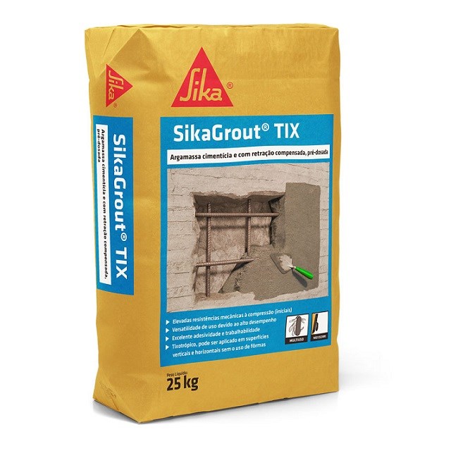 Sikagrout Tix 25kg Graute Cimentício Fluido Alta Resistência E Baixa Fluidez Sika