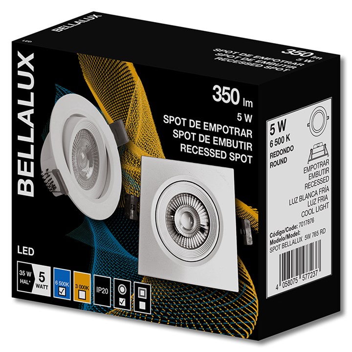 Spot Led de Embutir Redondo 5w 100 A 240v 350lm 6500k Br Bellalux Ledvance