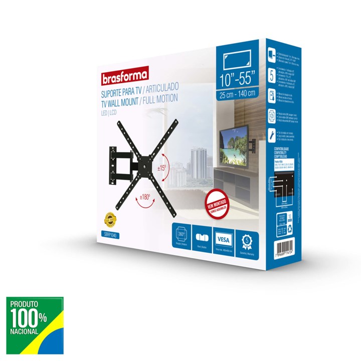 Suporte Para Tv de Parede Articulado de 10" A 55" Sbrp1040 Preto Brasforma