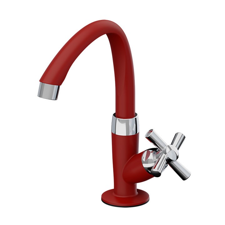 Torneira Lavatório Em Abs Mesa Bica Móvel Alta Cross Vermelha/Cromado 300000632 Tigre