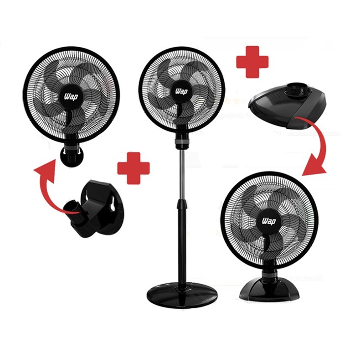 Ventilador Oscilante 3 Em 1 W130 Mesa Coluna Ou Parede Rajada Turbo 50cm Preto 220v 130w Fw046357 Wap