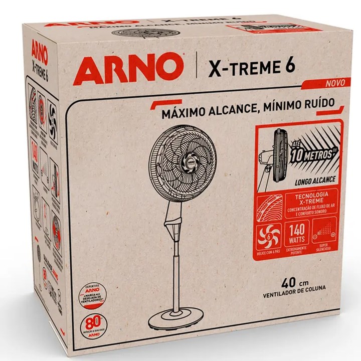 Ventilador Oscilante de Coluna Xtreme 6 Ve6c 40cm Preto 220v Arno